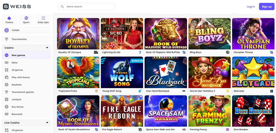 The best software providers facilitate the great gameplay experience. Some of the reputable and trustworthy software providers include Pragmatic Play, which hosts 578 games, the most games at Weiss.bet, Spribe, Relax Gaming, Hacksaw Gaming, Push Gaming, Nolimit City, Belatra, and Thunderkick.